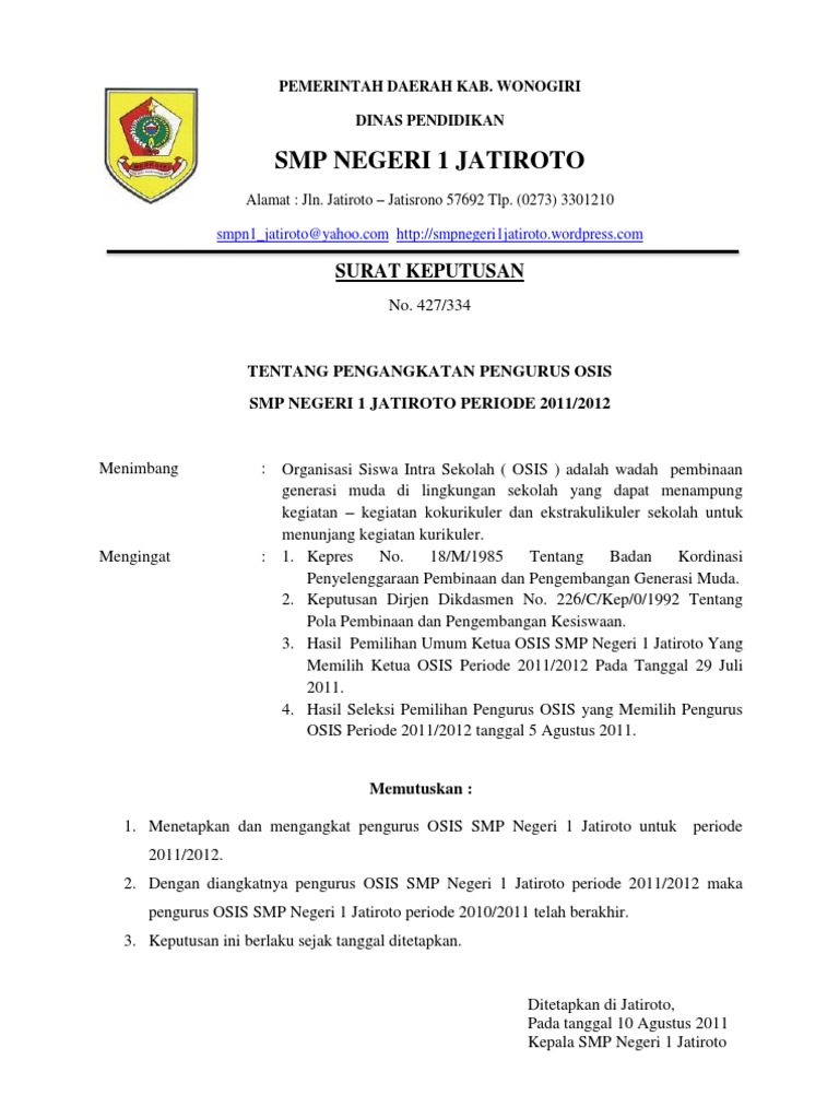 | Judul: 18 Contoh Surat Keputusan Osis Smp |