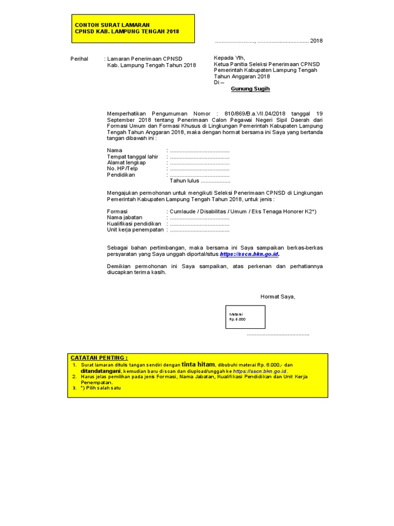 | Lihat Contoh Surat Lamaran Cpns Lampung Barat Pdf |
